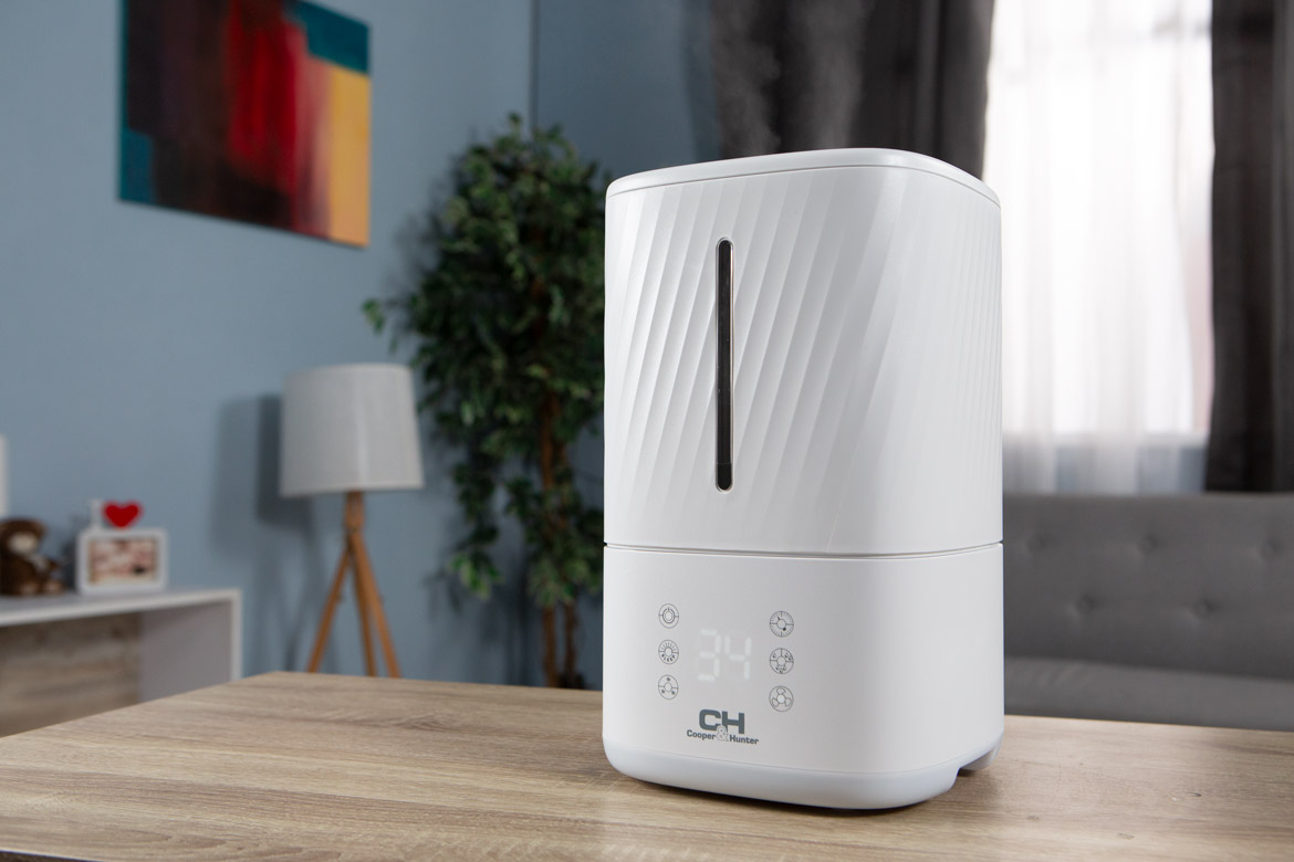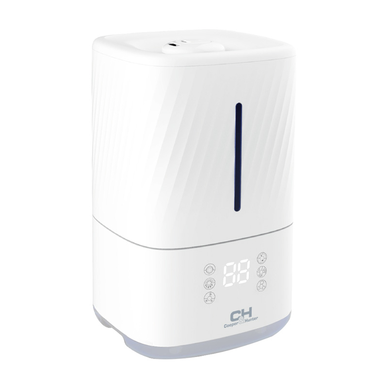 Зволожувач повітря CH‑4645T Cayman — це ультразвуковий побутовий зволожувач повітря Cooper & Hunter із серії Cayman, призначений для ефективного підвищення вологості в приміщеннях середнього і великого розміру. Модель підтримує не лише холодну пару, а й теплу пару (до ~80 °C) з пастеризацією води, що допомагає робити пар чистішим та знищувати бактерії. Є сенсорне управління, вбудований гігростат для автоматичного підтримання вологості, таймер, інтелектуальний нічний режим та підсвічування, що робить прилад зручним для використання навіть під час сну чи відпочинку.